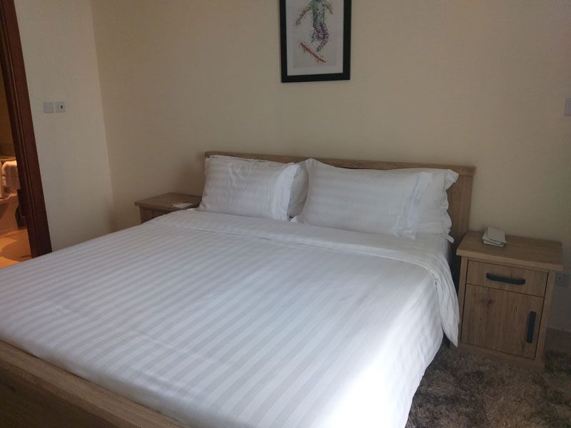 • Beds with headboard and modern mattresses, sheets, pillows, and clean bedspreads of suitable sizes as a minimum